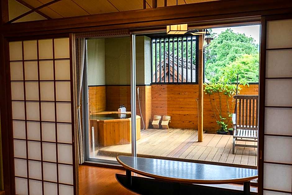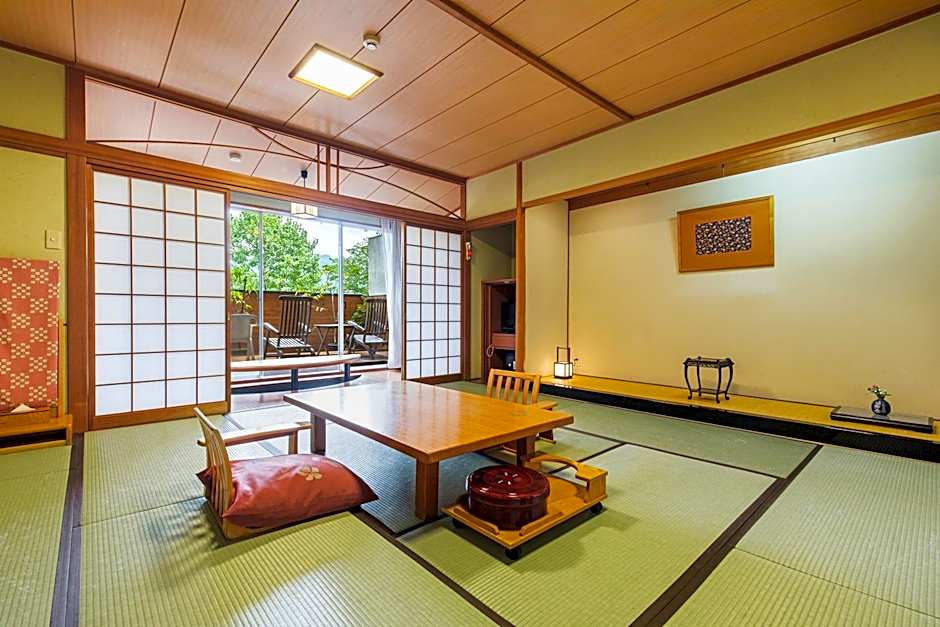 Guests will have a special experience as the family room features a private open-air bath. The family room provides air conditioning, tatami, as well as a private bathroom featuring a bath and a shower. The family room offers a flat-screen TV, a safe deposit box, an electric kettle and heating. The unit offers 4 futons.